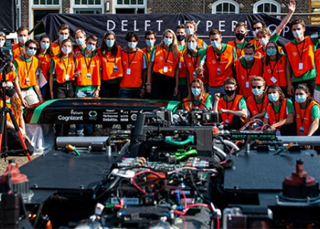 Despite the many good runs during the testing phase, Delft Hyperloop Team 04 was still quite nervous on Friday, July 17, on our premises at Crailoo in Hilversum. The team was ready to break the previous record of 202 km/h. And they did! Their pod, Atlas04, managed to reach 360 km/h on the long test track. A new record that was celebrated with, what else, champagne!