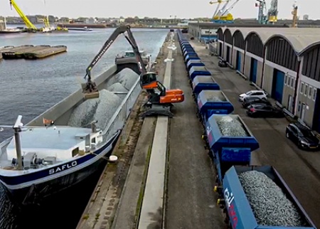 Spoorballast vervoeren van groeve tot spoor is een complex logistiek proces. Wij maakten een grote efficiëntie- en duurzaamheidsslag door verschillende processen samen te brengen op één locatie in Amsterdam. In het Westelijk havengebied zijn alle modaliteiten en faciliteiten bij de hand om de ballast met zo min mogelijk handelingen bij de projecten verspreid over het land te krijgen.