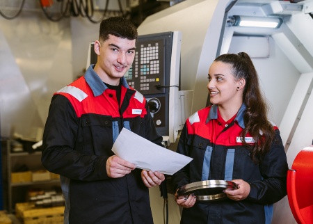 Die span(n)endsten Fertigungsverfahren stehen dir hier offen. In diesem Job bringst du durch Drehen, Fräsen und Schleifen mit CNC-gesteuerten Maschinen Werkstücke zur Perfektion. Zerspanungstechniker:innen sind mit der Planung, Herstellung und Bearbeitung von Werkstücken befasst. Mit spanenden Verfahren wir Bohren, Fräsen, Drehen, Feilen oder Schleifen entstehen unterschiedliche Bau- und Maschinenteile. Diese Achsen, Wellen, Lager, Bolzen, Keile, Zahnräder oder Scheiben halten den Betrieb am Laufen.