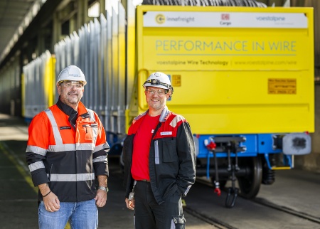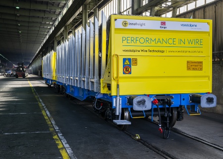 PERFORMANCE IN WIRE sorgt für grünen Drahttransport - jetzt auch durch die gemeinsame Entwicklung eines Prototypwaggons mit Innofreight, der Deutschen Bahn und der voestalpine Wire Rod Austria GmbH mit dem klaren Ziel, den Transport von Walzdrahtcoils zu optimieren.